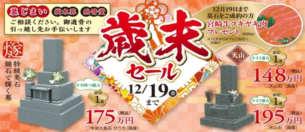 歳末墓石フェア!12/19までに墓石ご成約の方に宮崎牛プレゼント!