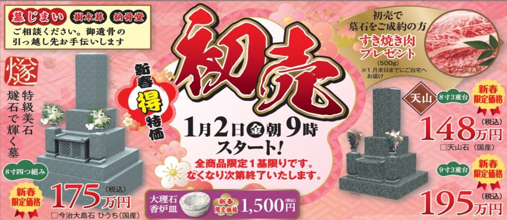 1月末日までに、墓石をご購入の方にすき焼き肉をプレゼント!!